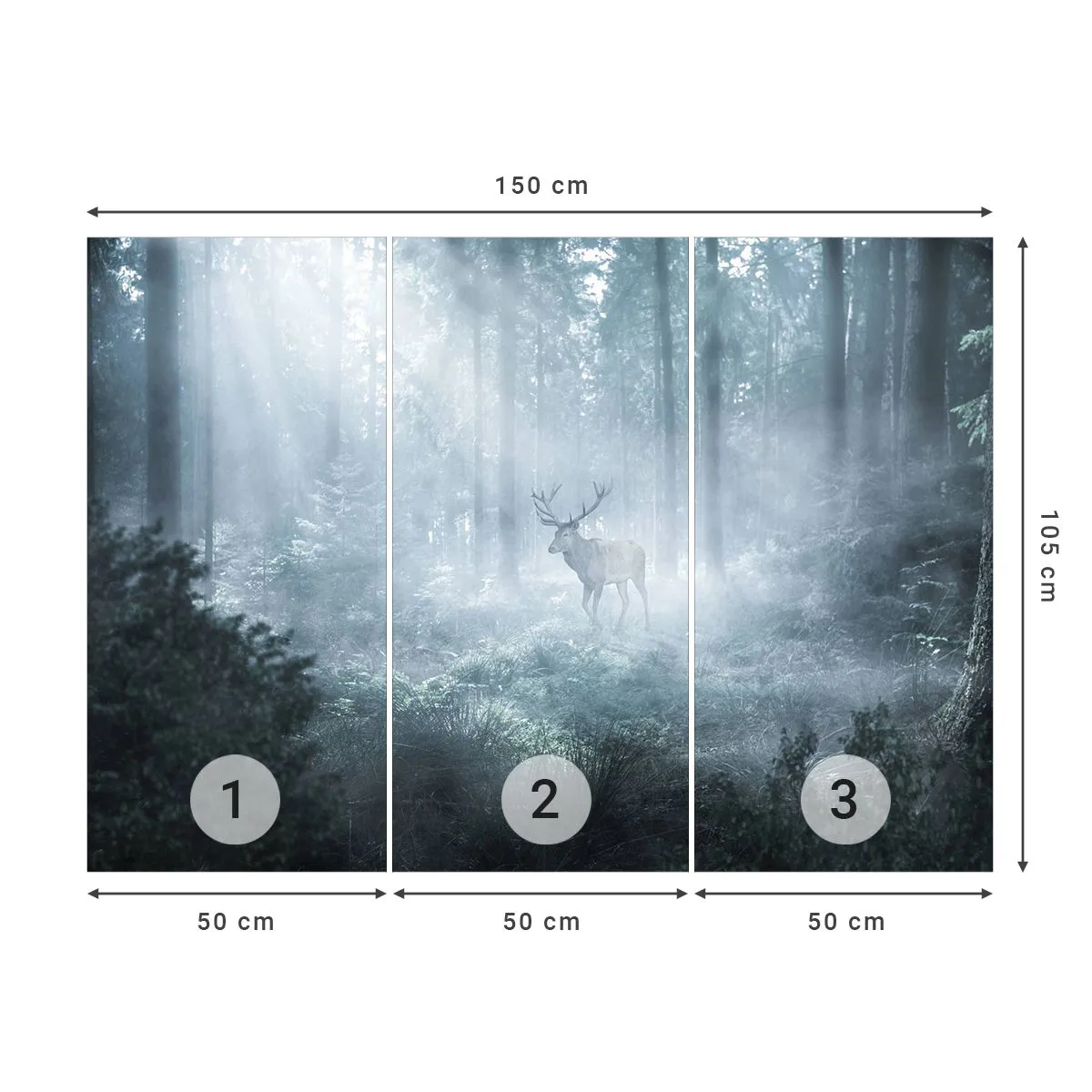 Fototapet Premium Sand - Morgenvandring rundt på godset - Landskab, Skov, Hjort - 150x105 cm