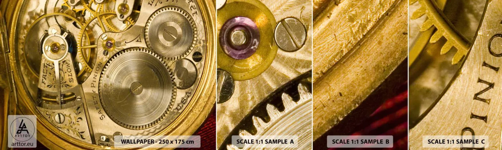Fototapet Prøve Standard Eco - Følg med tiden - Ur, Ur mekanisme, Årgang - 100x30 cm
