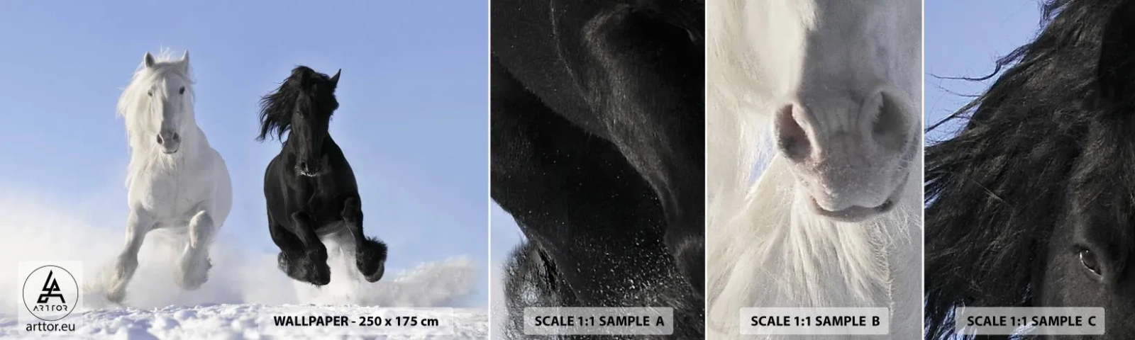 Fototapet Prøve Standard Eco - Sort og hvid galop - Dyr, Hest, Vinter - 100x30 cm