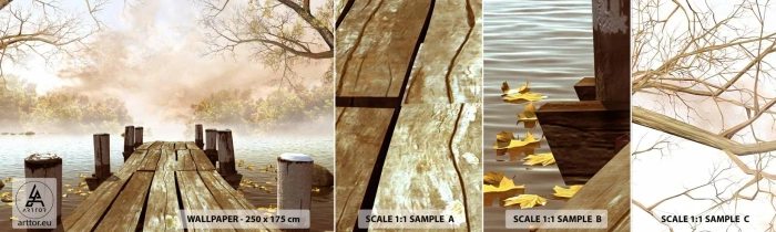 Fototapet Prøve Standard Eco - Efterårets blide tristhed - Landskab, Sø, træbro - 100x30 cm