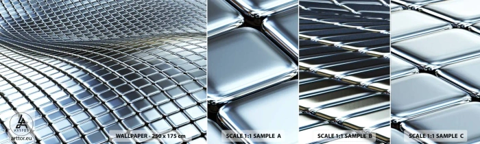 Fototapet Prøve Standard Eco - Bølge i metallisk sølv - Abstraktion, Grafik, Stykke - 100x30 cm