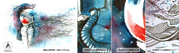 Fototapet Prøve Standard Eco - Alene med kosmos - Astronaut, Kosmonaut, Abstraktion - 100x30 cm