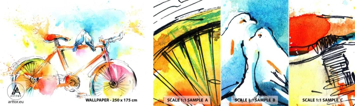 Fototapet Prøve Standard Eco - To på en cykel - Abstraktion, Cykel, Fugle - 100x30 cm