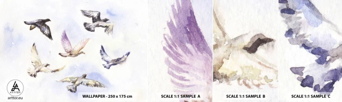 Fototapet Prøve Standard Eco - Frihed i grå og blå - Fugle, Grafik, Stykke - 100x30 cm