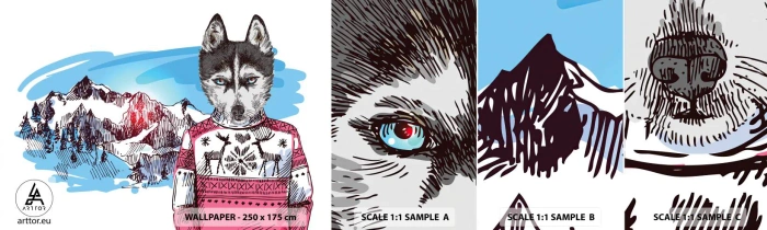Fototapet Prøve Standard Eco - Ulv i fåreuld - Abstraktion, Ulv, For børn - 100x30 cm