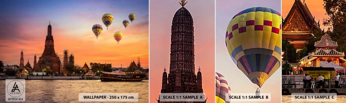 Fototapet Prøve Standard Eco - Det er her, eventyrene bliver født - Bangkok, Daggryets tempel, Thailand - 100x30 cm