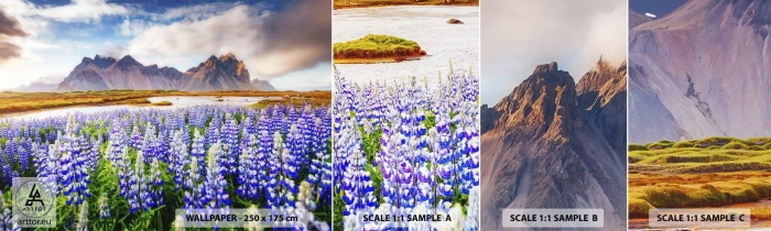 Fototapet Prøve Standard Eco - Styrke og strenghed ved siden af blidhed - Landskab, Bjerge, Blomster - 100x30 cm