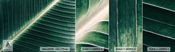 Fototapet Prøve Standard Eco - Naturens rytme - Abstraktion, Grønt blad, Grafik - 100x30 cm