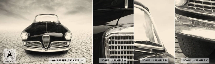 Fototapet Prøve Standard Eco - Og hvordan kan man ikke elske mig? - Bil, Årgang, Sort og hvid - 100x30 cm