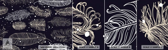 Fototapet Prøve Standard Eco - Fjerede blonder - Fuglens fjer, Grafik, Stykke - 100x30 cm
