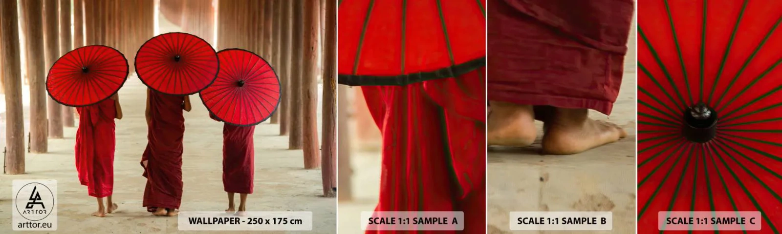 Før du beslutter dig for at købe et fototapet i fuld størrelse, opfordrer vi dig til at bestille en materialeprøve. MILJØSTANDARD i dimension 100x30 cm. Takket være prøven kan du kontrollere kvaliteten af materialet live, se farvegengivelsen og lære overfladeteksturen at kende, hvilket vil hjælpe dig med at træffe en endelig beslutning.