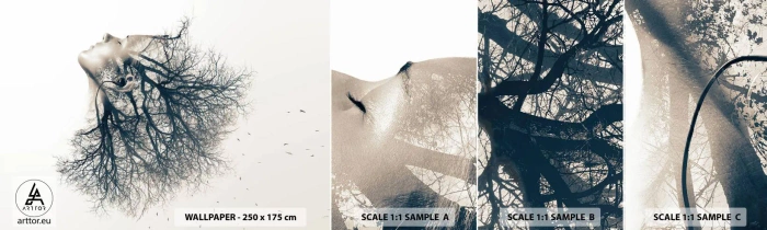 Fototapet Prøve Standard Eco - Lyttede til træets hvisken - Abstraktion, Kvindens ansigt, Træ - 100x30 cm