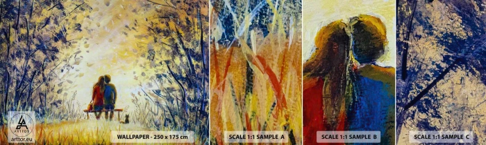 Fototapet Prøve Standard Eco - Et magisk øjeblik - Et par kærester, Parkere, Natur - 100x30 cm
