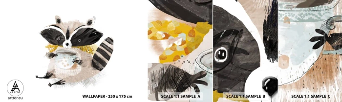 Fototapet Prøve Standard Eco - Min ven vaskebjørnen - For børn, Vaskebjørn, Grafik - 100x30 cm