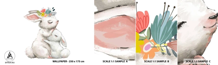 Fototapet Prøve Standard Eco - Der er intet sted som hos mor - For børn, Kanin, Mor med Barn - 100x30 cm