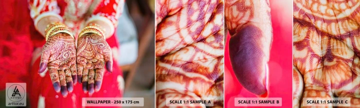 Fototapet Prøve Standard Eco - Klar til at fange lykken - Kvinders hænder, Orientalske designs, Indien - 100x30 cm