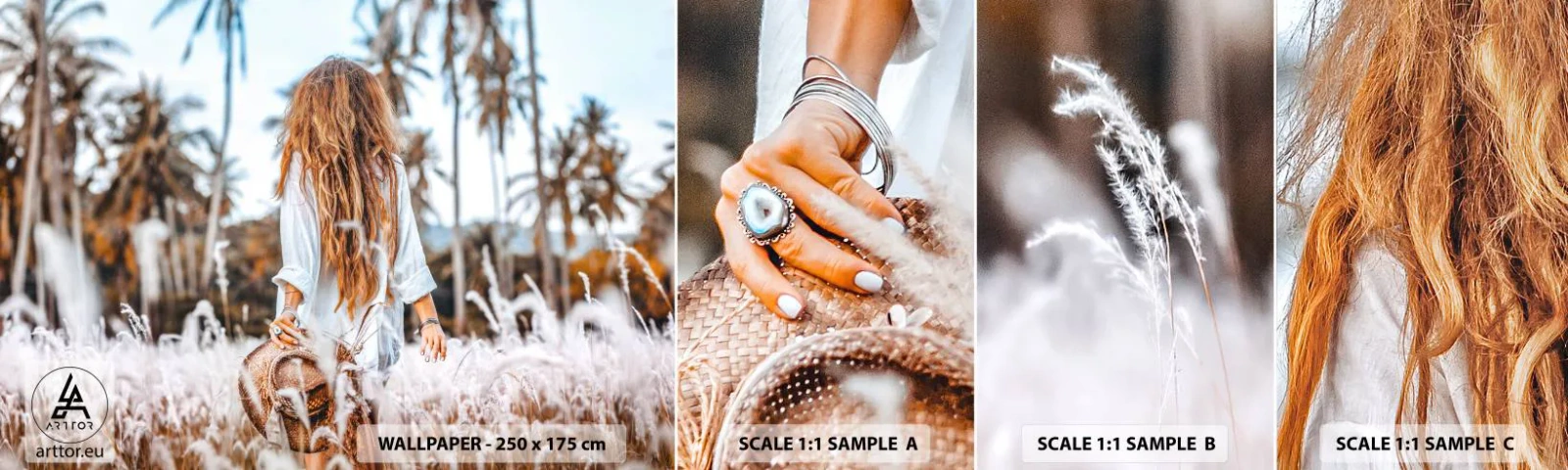 Fototapet Prøve Standard Eco - Født af græsdun - Kvinde, Årgang, Boho - 100x30 cm