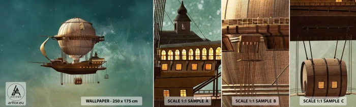 Fototapet Prøve Standard Eco - Jules Verne hilser - Retro, Rejse, Ballon - 100x30 cm