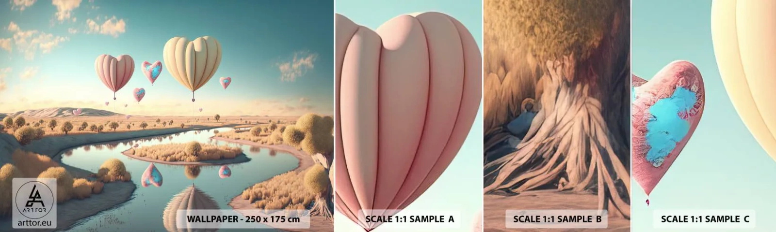 Fototapet Prøve Standard Eco - Kærlighed lader dig svæve - Balloner, Pastel, Slik - 100x30 cm
