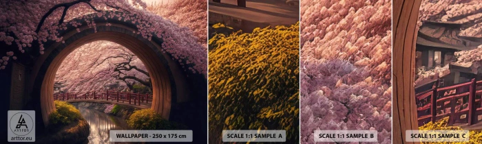 Fototapet Prøve Standard Eco - Japansk forår - Bro, Japan, Japansk kirsebær - 100x30 cm