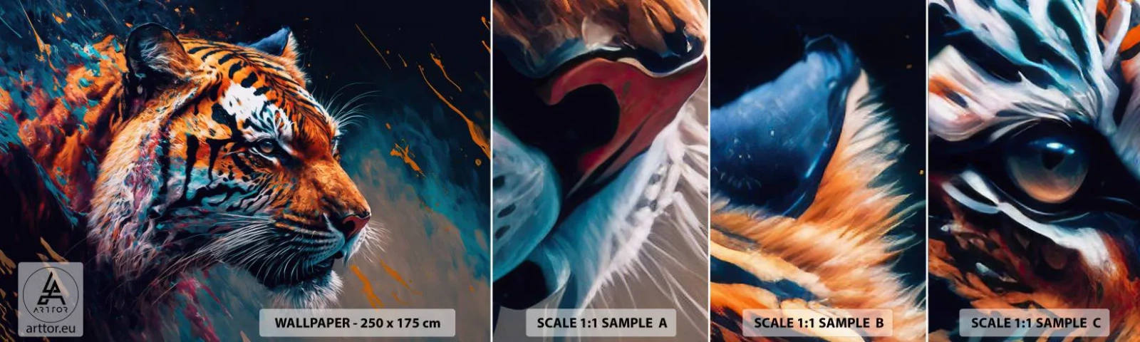 Fototapet Prøve Standard Eco - Vild skønhed - Tiger, Farverig, Dyr - 100x30 cm