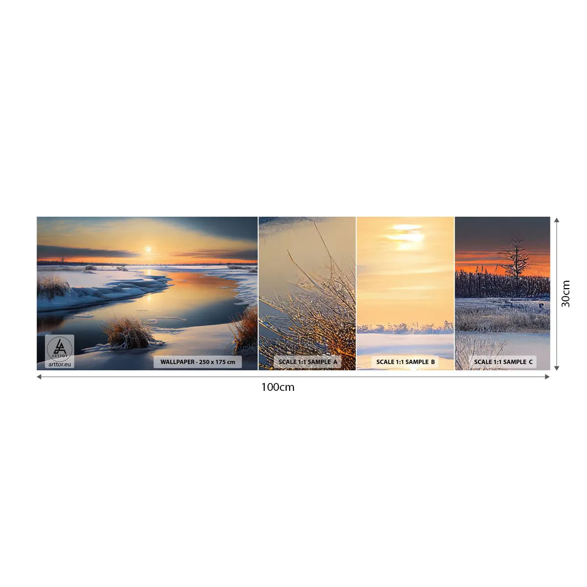 Fototapet Prøve Standard Eco - Vintersolnedgang - Vinter, flod, Landskab - 100x30 cm
