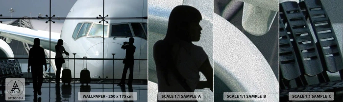 Prøve Fototapet Premium Sand - Vis a vis i lufthavnen - Fly, Lufthavn, Rejser - 100x30 cm