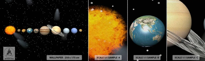 Prøve Fototapet Premium Sand - Og planeterne er ved at blive skøre, ved at blive skøre.... - Rum og astronomi, Solsystem, Planeter - 100x30 cm