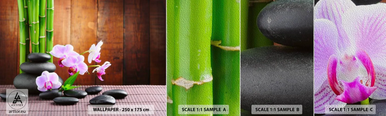 Prøve Fototapet Premium Sand - Oplev Østens fornøjelser - Blomster, Orkidé, Orkidé - 100x30 cm