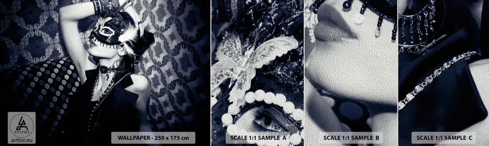 Prøve Fototapet Premium Sand - Dekorationer, pynt, mønstre... - Kvinde, Venetiansk maske, Model - 100x30 cm