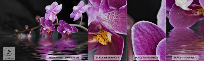 Prøve Fototapet Premium Sand - En lilla afspejling af skønhed - Blomster, Orkidé, Natur - 100x30 cm
