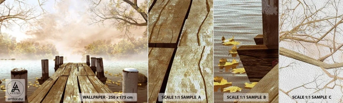 Prøve Fototapet Premium Sand - Efterårets blide tristhed - Landskab, Sø, træbro - 100x30 cm
