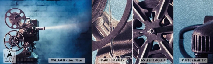 Prøve Fototapet Premium Sand - I en gammel biograf - Filmprojektor, Årgang, Kamera - 100x30 cm