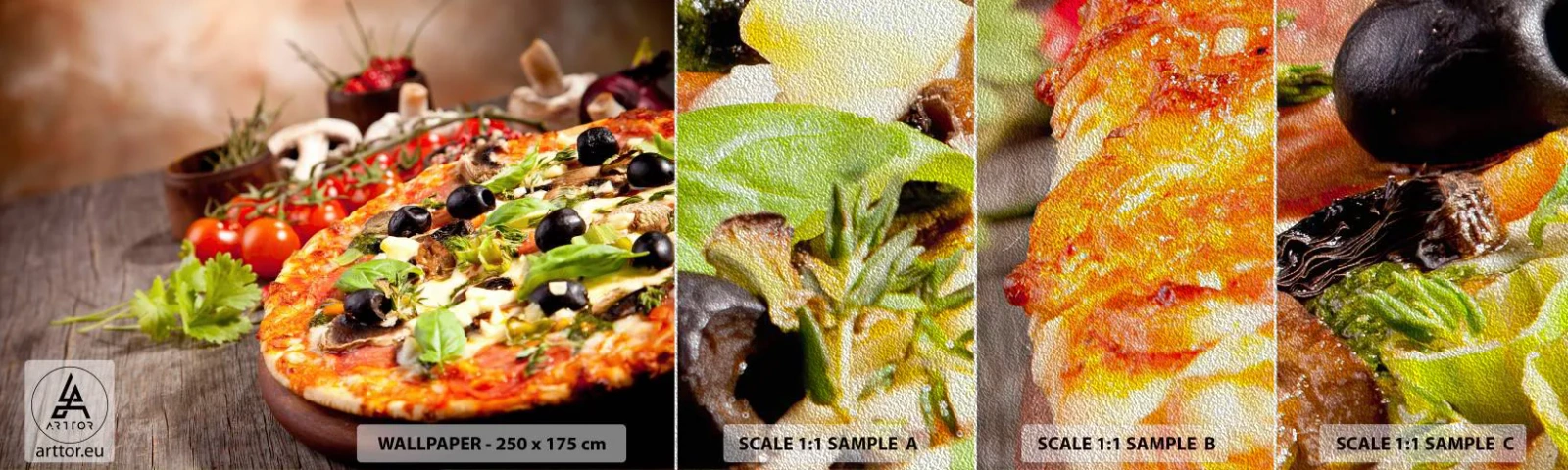 Prøve Fototapet Premium Sand - Af tellurholdige bestanddele - Gastronomi, Pizza, Italien - 100x30 cm