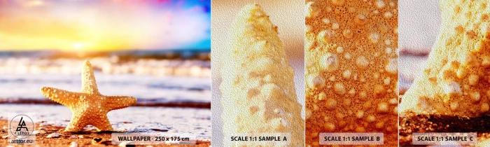 Eksempel på fototapet PREMIUM SAND er en god mulighed for at mærke materialets tykkelse og se selv, hvor holdbart det er. På denne måde kan du være sikker på, at det materiale, du vælger, passer perfekt til dit interiør og opfylder alle dine forventninger med hensyn til æstetik og funktionalitet.