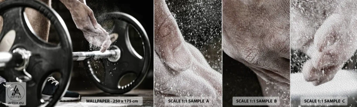 Prøve Fototapet Premium Sand - Udfordringen er taget imod! - Sport, Gym, Vægtløftning - 100x30 cm