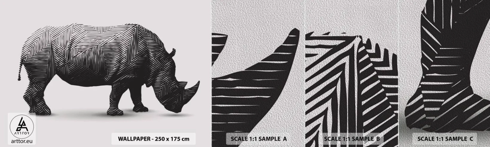 Prøve Fototapet Premium Sand - Naturens geometriske skønhed - Dyr, Næsehorn, Grafik - 100x30 cm