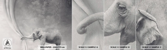 Prøve Fototapet Premium Sand - Afslør hemmeligheden - Abstraktion, Elefant, Grafik - 100x30 cm