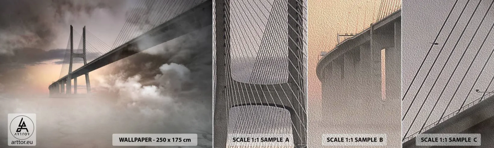 Prøve Fototapet Premium Sand - På en flod, der ikke eksisterer - Landskab, Bro, Arkitektur - 100x30 cm
