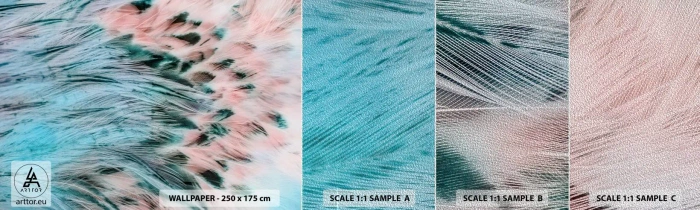 Prøve Fototapet Premium Sand - Safir lyserød fnug - Abstraktion, Stykke, Fuglefjer - 100x30 cm