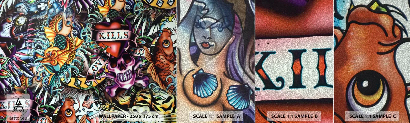 Prøve Fototapet Premium Sand - En tatovørers drøm - Graffiti, Vægmaleri, Stykke - 100x30 cm