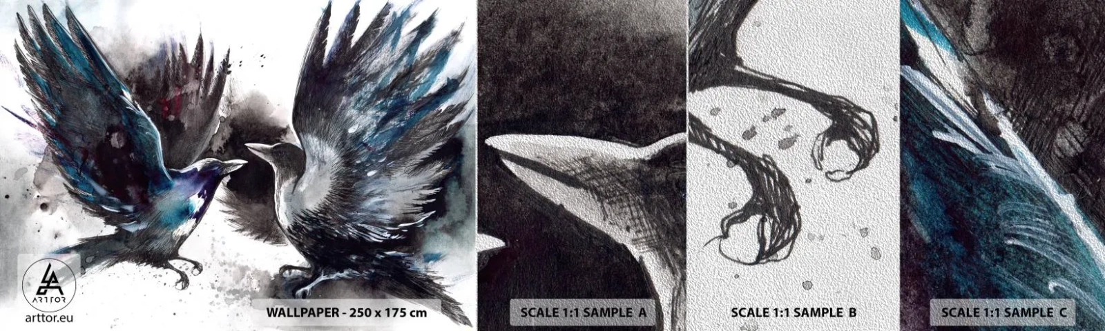 Prøve Fototapet Premium Sand - En ravn til en ravn... - Abstraktion, Fugl, Dyr - 100x30 cm