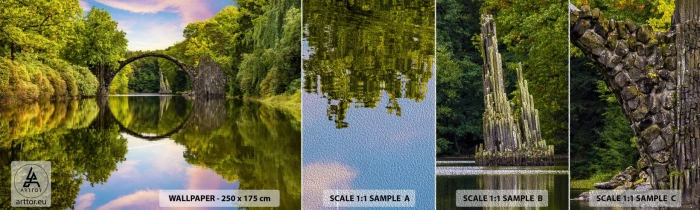 Prøve Fototapet Premium Sand - På mødet mellem to verdener - Landskab, flod, Bro - 100x30 cm
