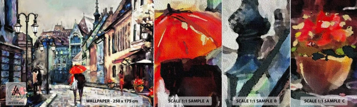 Prøve Fototapet Premium Sand - Regn til to - By, Arkitektur, Gammel by - 100x30 cm