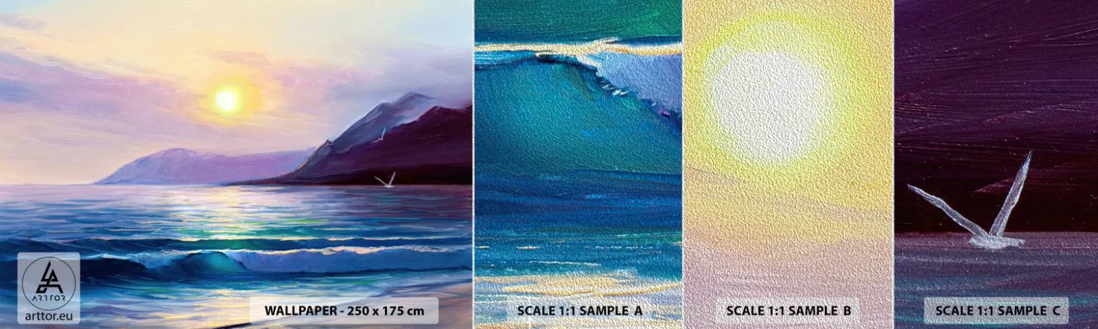 Før du beslutter dig for at købe et fototapet i fuld størrelse, opfordrer vi dig til at bestille en materialeprøve. MILJØSTANDARD i dimension 100x30 cm. Takket være prøven kan du kontrollere kvaliteten af materialet live, se farvegengivelsen og lære overfladeteksturen at kende, hvilket vil hjælpe dig med at træffe en endelig beslutning.
