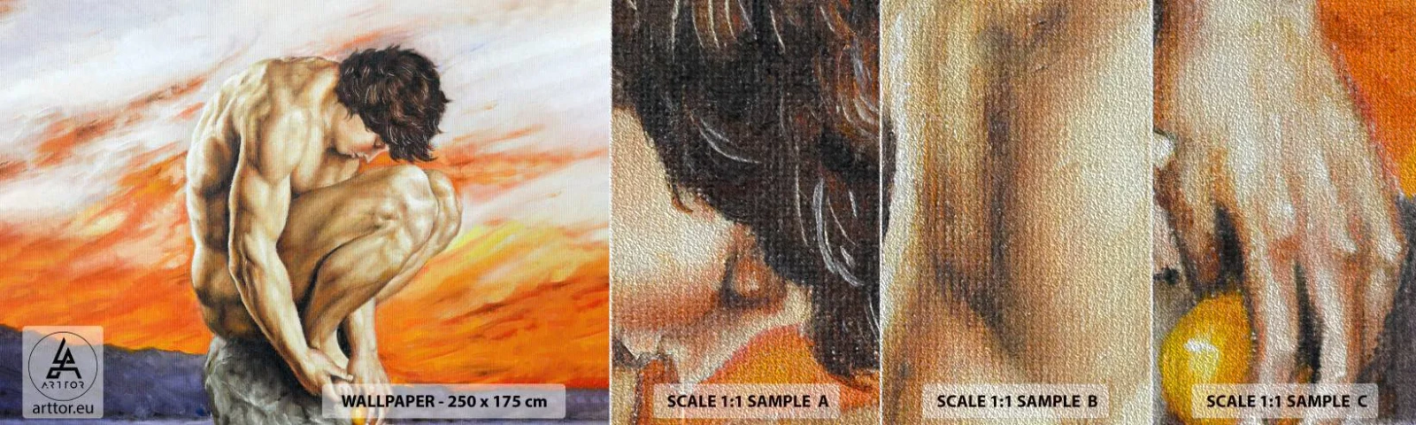 Før du beslutter dig for et fototapet i fuld størrelse PREMIUM SAND , opfordrer vi dig til at bestille en materialeprøve i følgende dimensioner:100x30 cm Takket være prøven kan du tjekke materialets kvalitet live, se farvegengivelsen, mærke overfladestrukturen og vurdere materialets tykkelse, hvilket vil hjælpe dig med at træffe en informeret beslutning om at vælge det bedste fototapet til dit interiør.