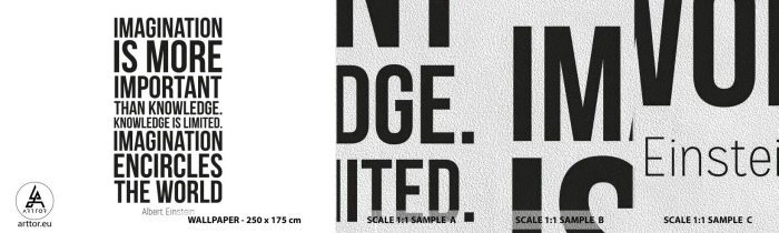 Prøve Fototapet Premium Sand - Einstein om fantasiens kraft - Typografi, Bekræftelse, Maxim - 100x30 cm