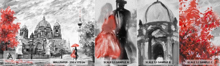 Prøve Fototapet Premium Sand - Møde i Berlin - By, Maleri, Arkitektur - 100x30 cm