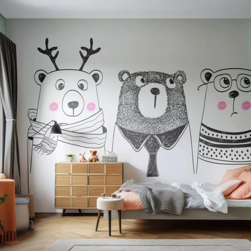 Fototapet Premium Sand - Bamse, bamse, bamse og bamse - For børn, Bjørn, Illustration - 250x175 cm