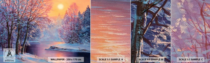 Prøve Fototapet Premium Sand - Vinterens farver - Landskab, flod, Skov - 100x30 cm